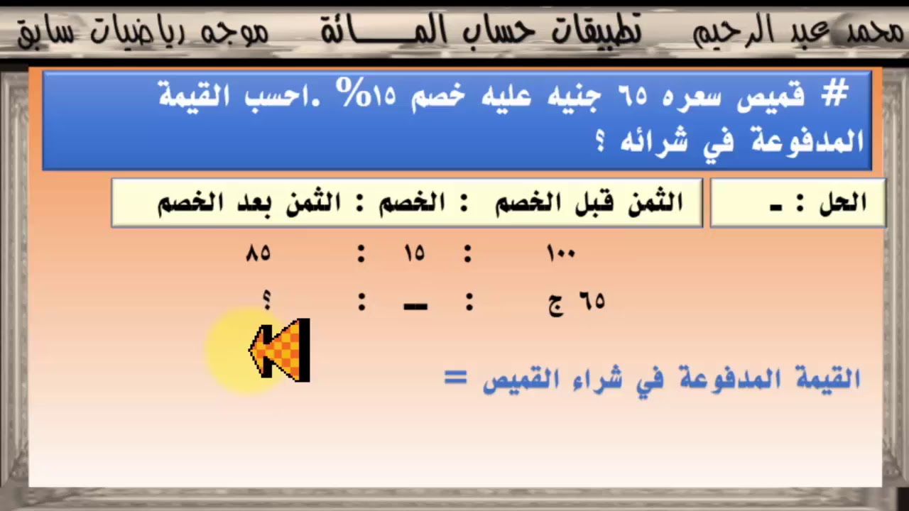 تطبيقات على النسبة المئوية ١م ف٢ المعلم أيمن حسين Youtube