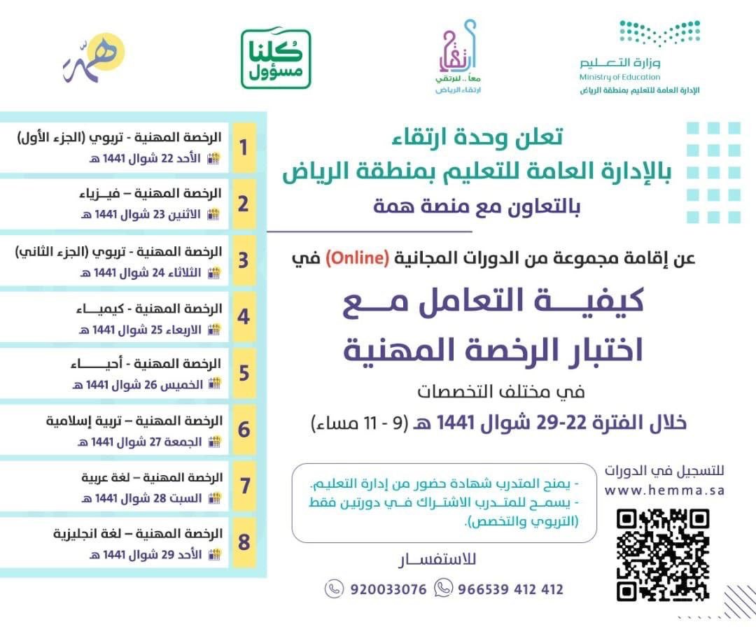 دورات الرخصة المهنية المتاحة للمعلمين والمعلمات عبر منصة همة خبرنا
