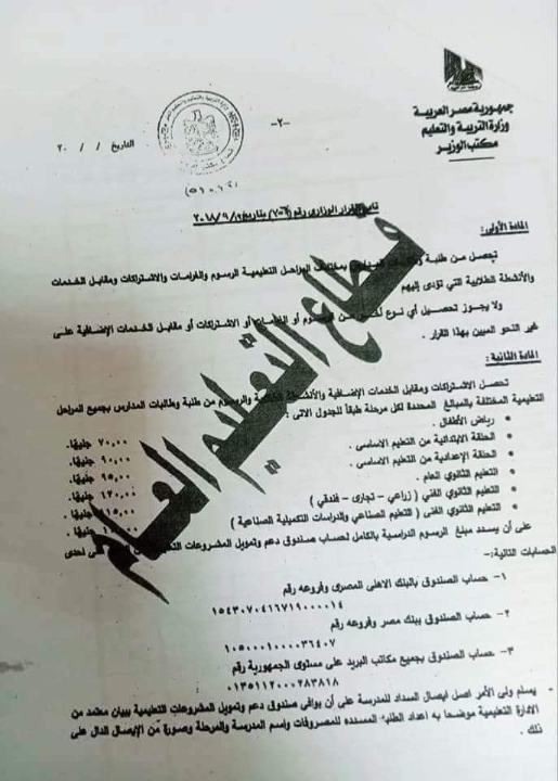القرار الوزاري الخاص بالمصروفات الدراسية البوابة المصرية للتعليم الفني Facebook